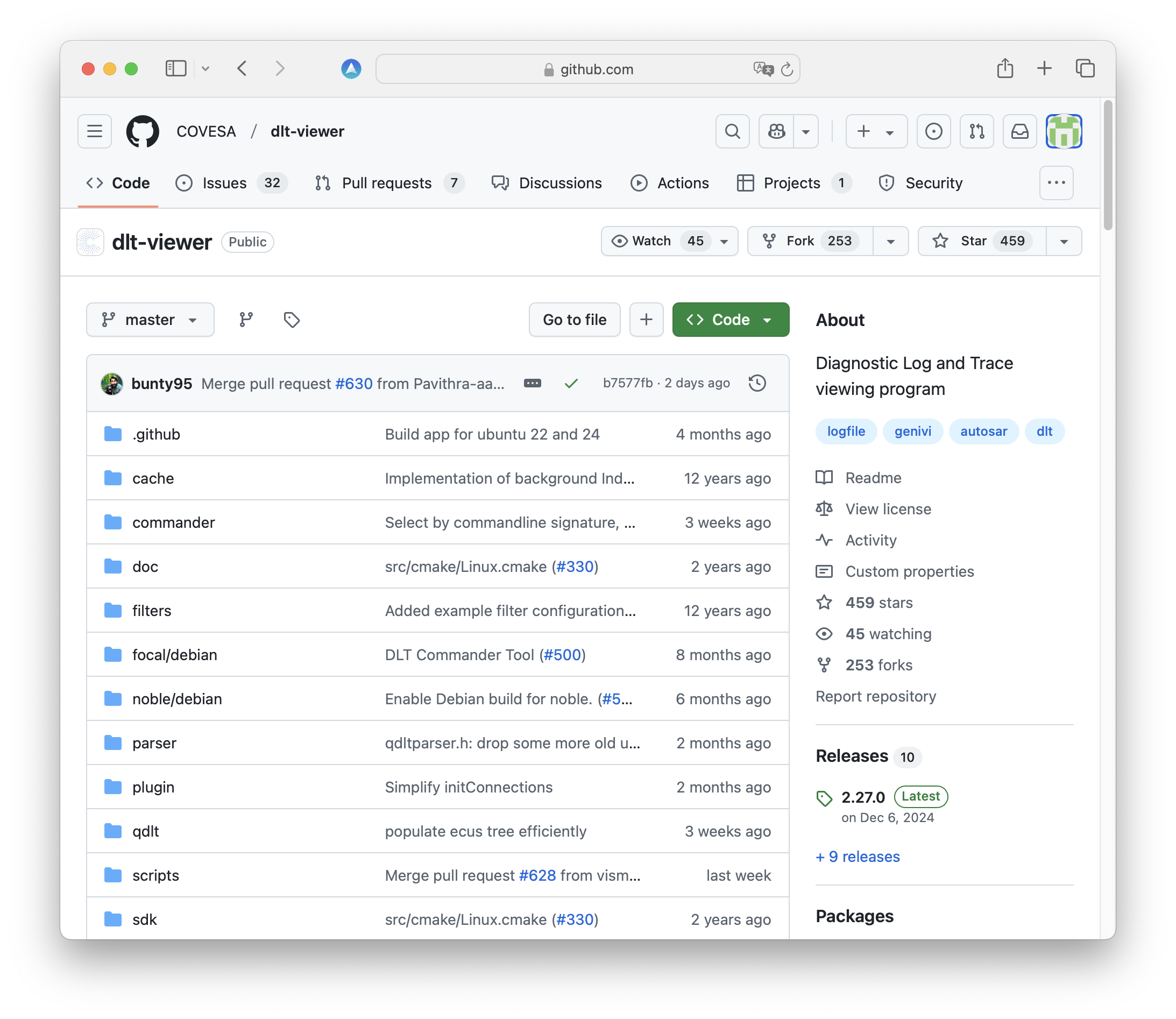 Release의 2.27.0 버전에서 Assets부분에 Source code (zip)을 받아서 압축을 풀고, BuildDltViewer.pro 프로젝트 파일을 QtCreator로 열어봅니다.